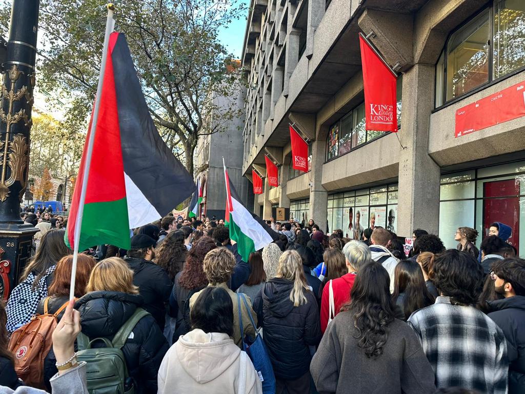 We demand that King’s College London divests from funds which directly support and profit from Israel’s occupation and war crimes, and ends it’s partnerships with Israeli universities, in line with the Boycott, Divest, and Sanctions campaign.